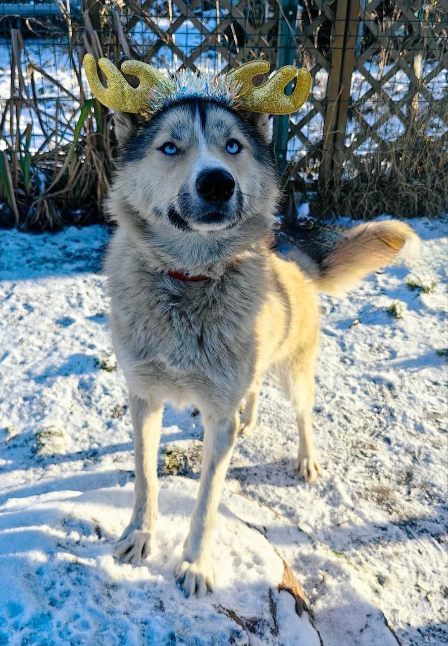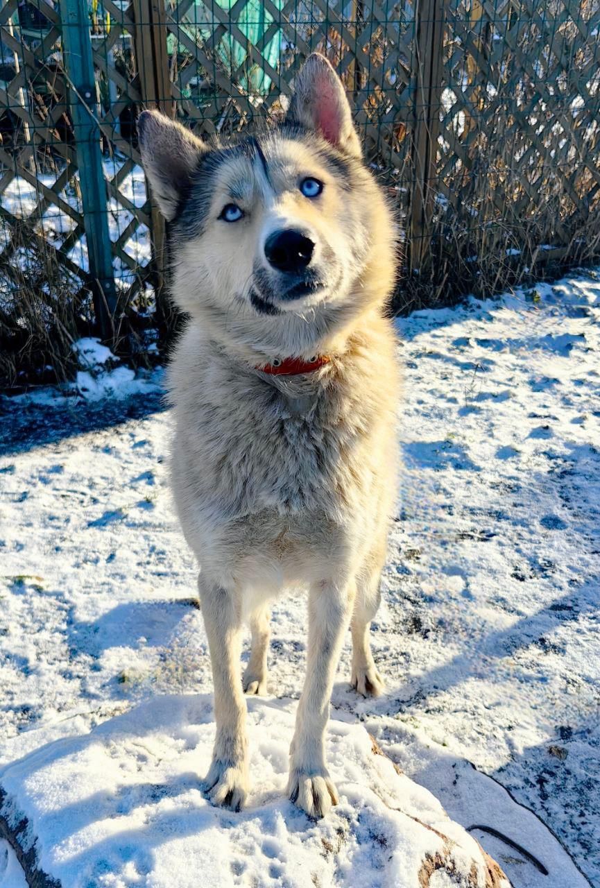 Betty ist noch zu dünn, aber in einem Zuhause mit liebevoller Aufmerksamkeit wird sie sich in kurzer Zeit zu der schönen Husky entpuppen, die in ihr steckt.