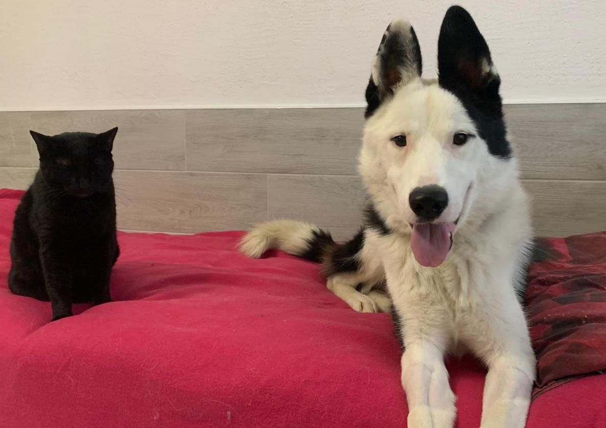 DOMINO war erschöpft vom gefährlichen Leben auf der Straße. Und nun zeigt er sich als der perfekte Hund: freundlich mit Mensch, Hund, Katze und einfach wunderschön!