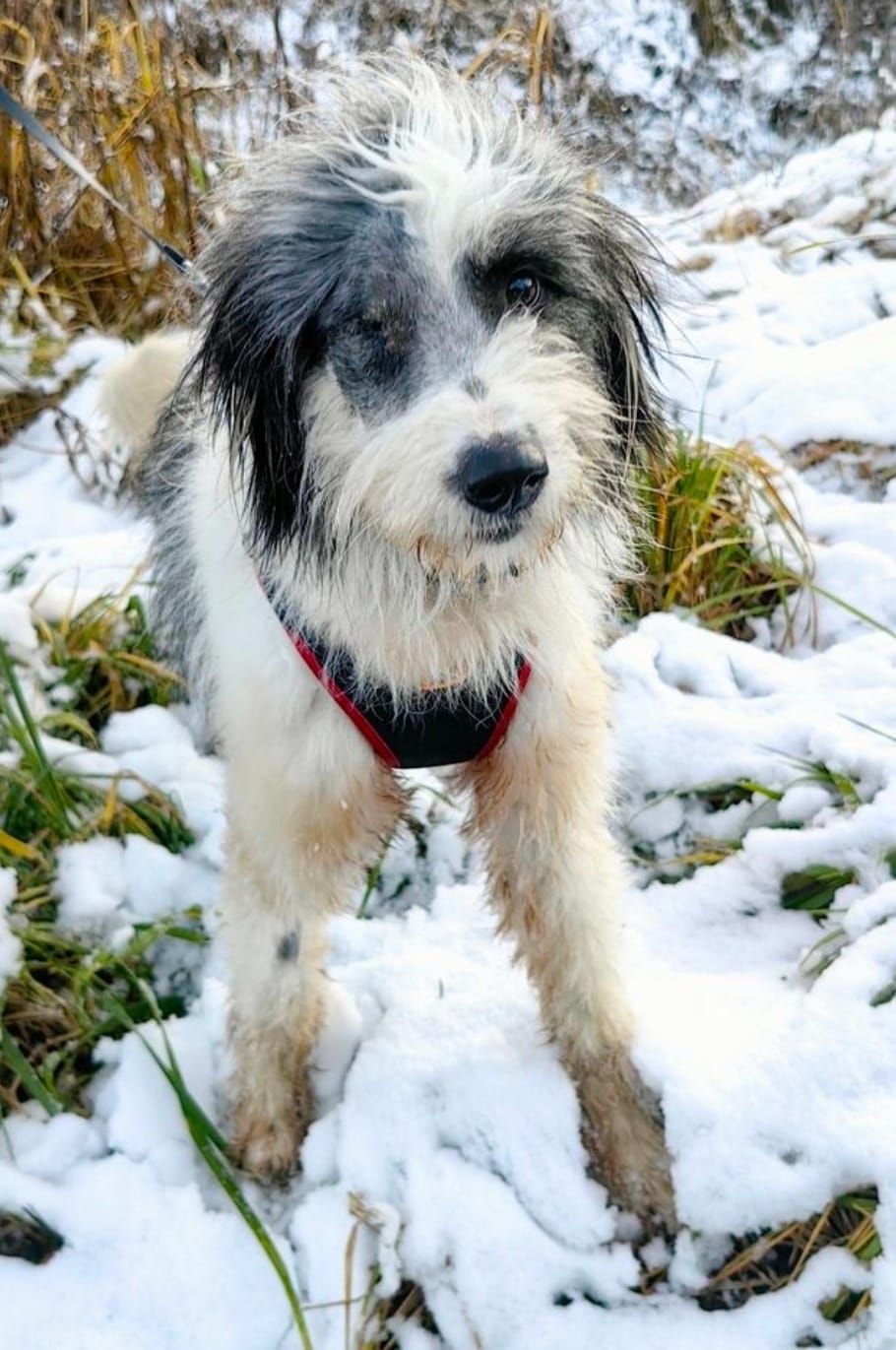 Puh, der junge Bobtailmix, ist noch kein Jahr alt, hat aber schon ein ganzes schweres Leben hinter sich.
