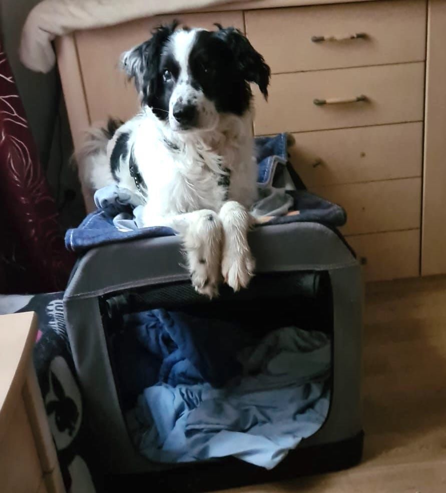 Mit Katzen kommt er zurecht, aber er geht ihnen lieber aus dem Weg. Bei fremden Menschen ist er vorsichtig und schaut sich die Situation erstmal an.