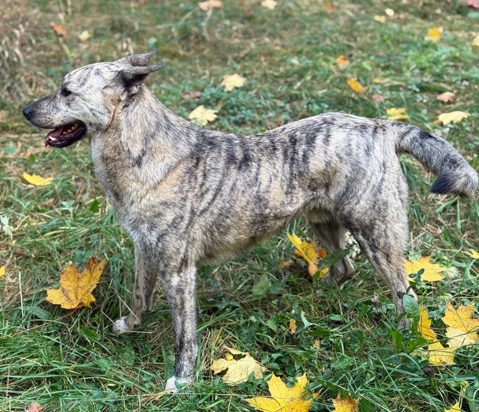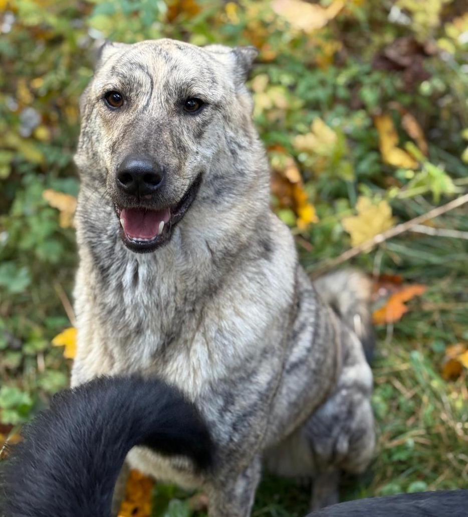 Dieser beeindruckende Rüde ist verspielt und fröhlich und tobt gerne mit seinen Artgenossen. Mit Katzen kommt er klar.